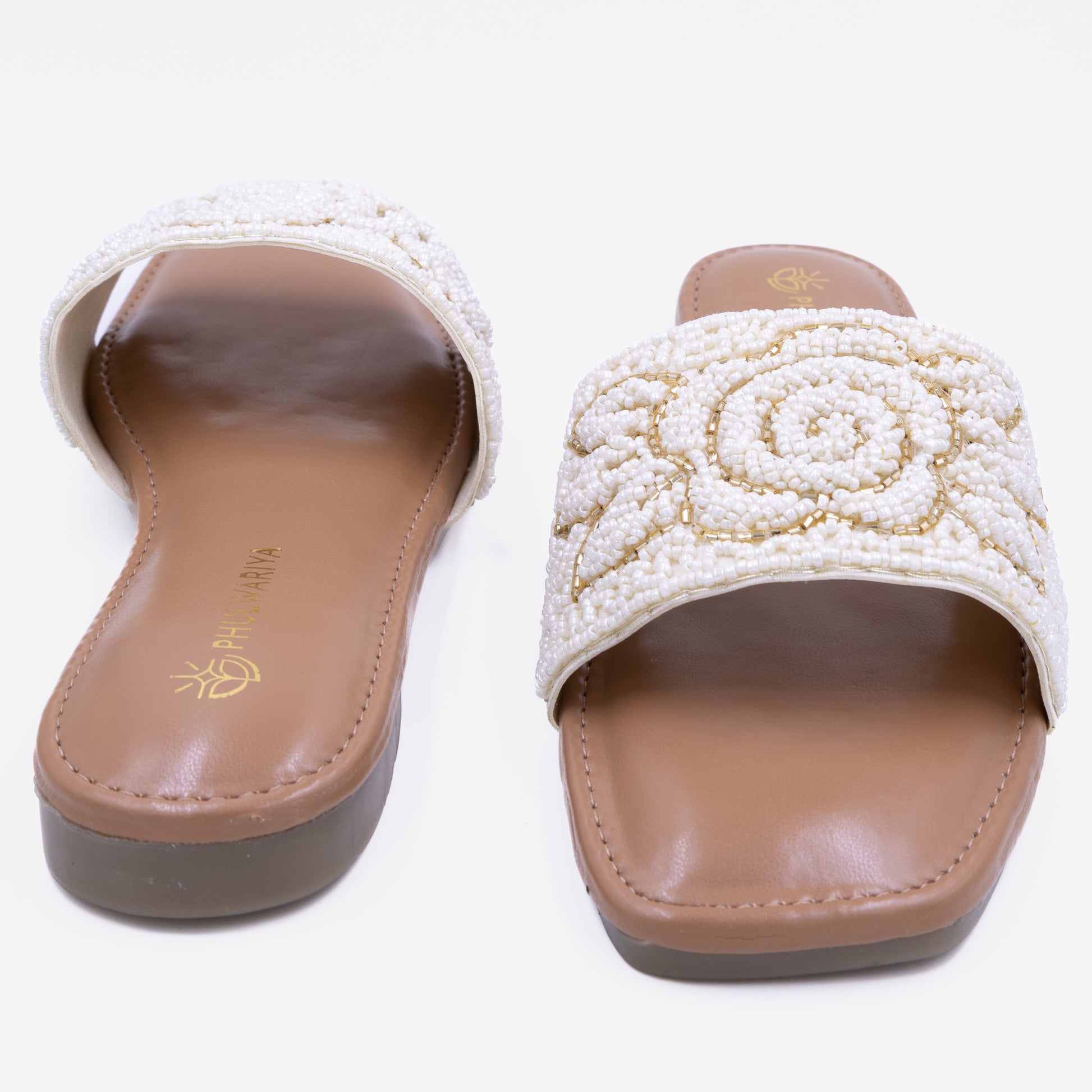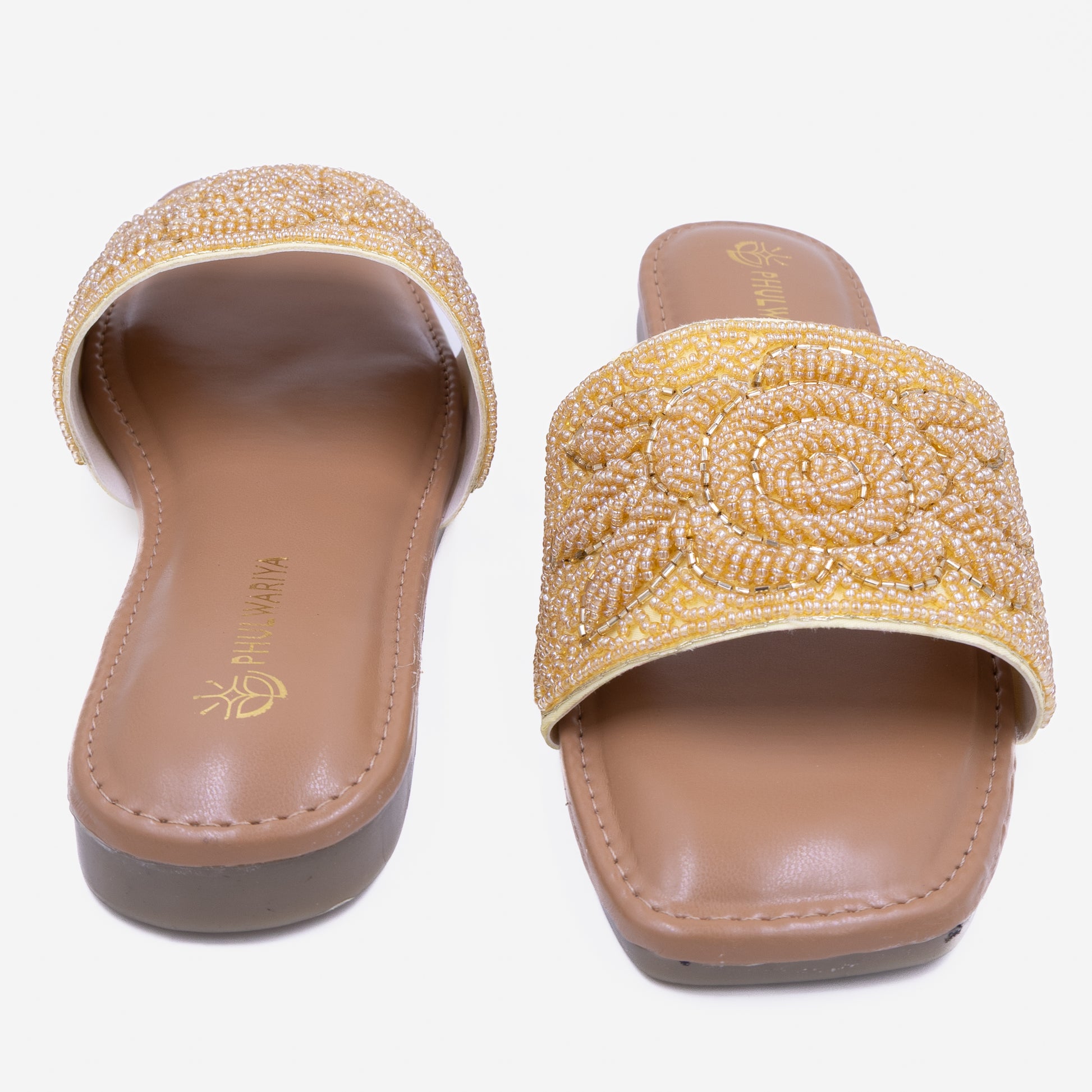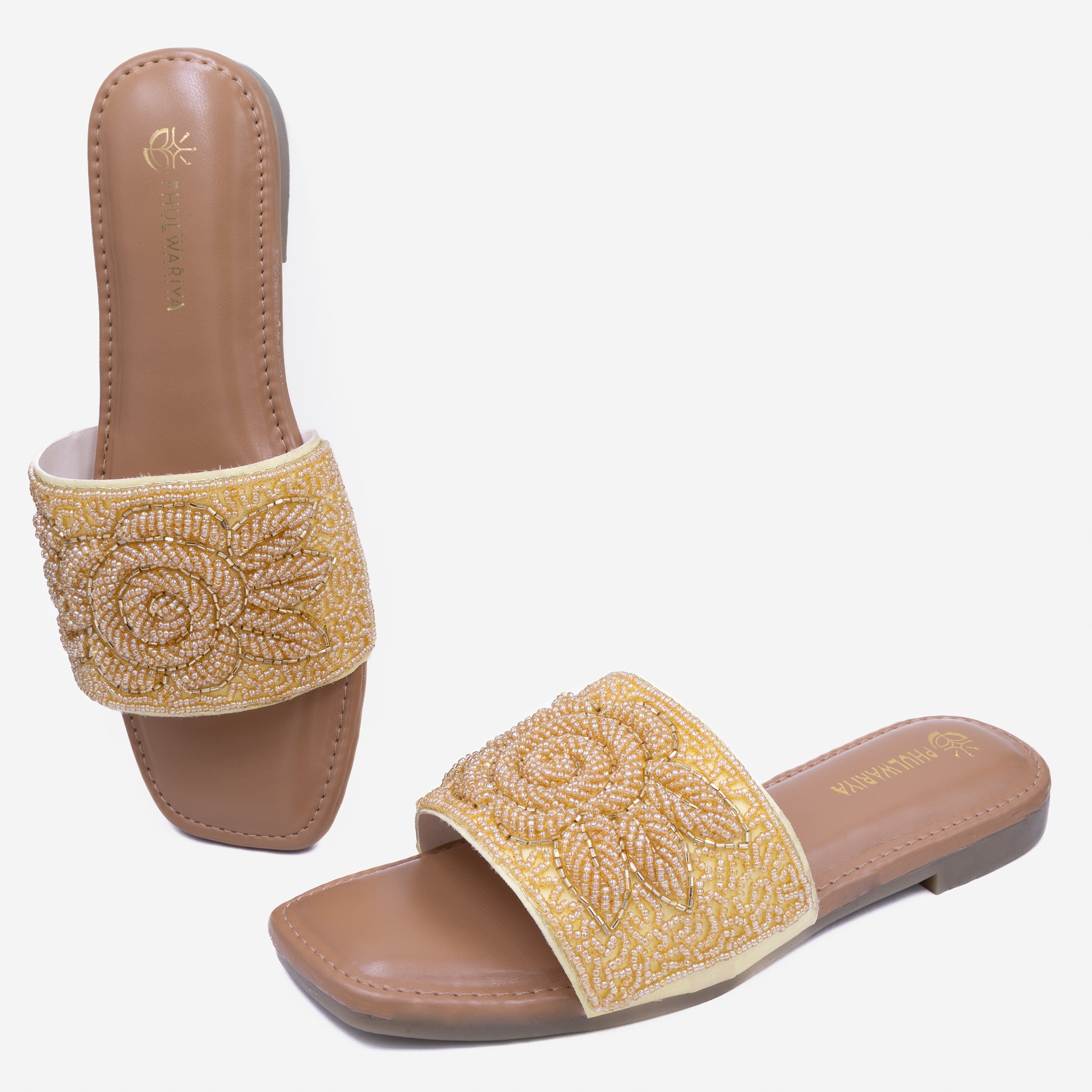 Step into comfort and style with Phulwariya Flat Sandal for Women. These trendy flat sandals feature intricate party designs, perfect for casual wear or festive occasions. Durable and comfortable, they offer a cushioned sole for all-day ease. Ideal for pairing with ethnic or modern outfits.